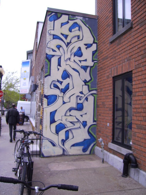 Grafitismo vertical sobre cimento aplicado para defender as tijoleira, anuncia-nos a existência de uma loja. Neste caso trata-se de um "dépaneur", que não é mais do que uma loja tipo mercearia e produtos variados. Os produtos variados são dos mais diversos tipos e podem ser diferentes de loja para loja. O "dépaneur" tem tido a particularidade de estarem abertos até mais tarde que os supermercados e assim satisfazerem os retardatários.